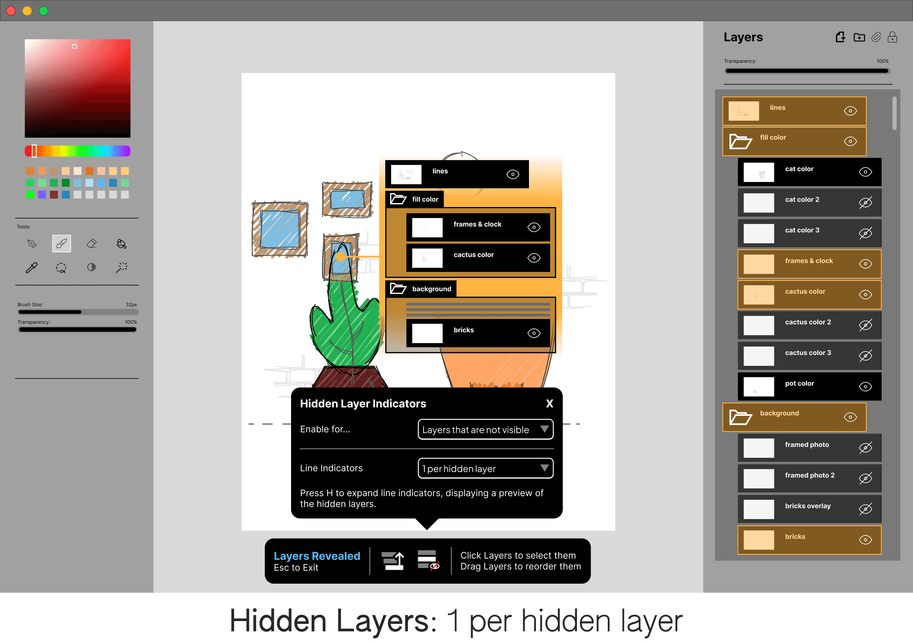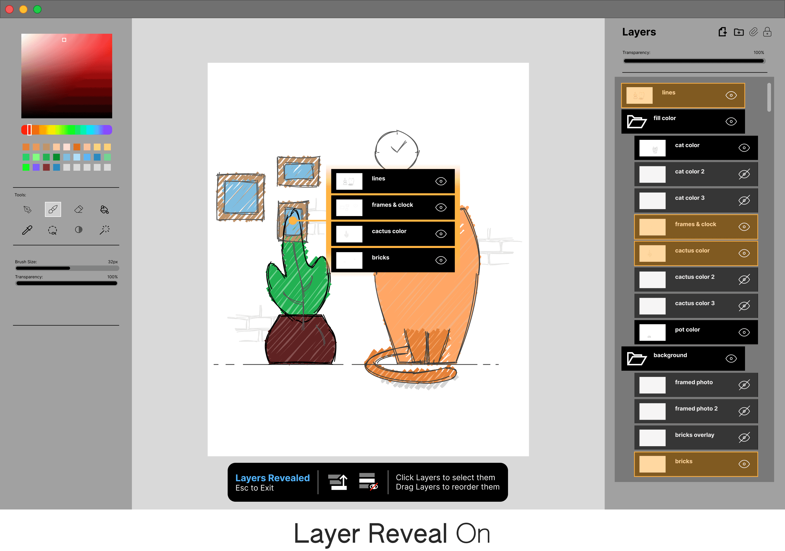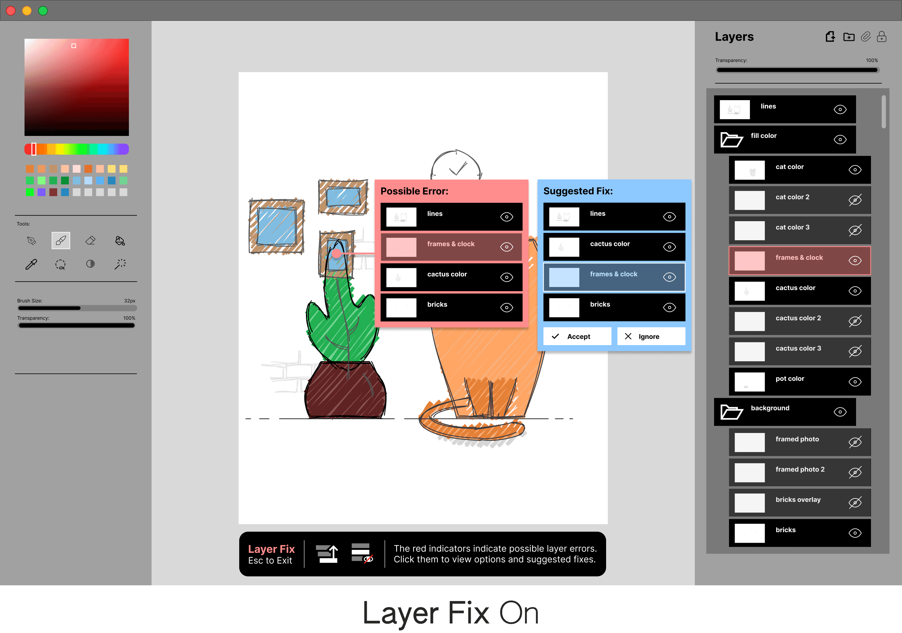 We thought about artists' struggles from color creation and selection to object orientation, and eventually landed on layers.